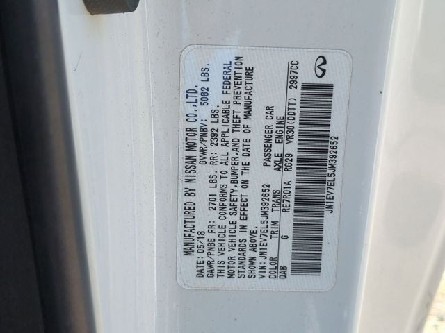 Thank you for considering Lafontaine INFINITI Nissan for your next vehicle! We are home of the Family Deal, and the buy 3, 1 free tire guarantee! All vehicles go through a rigorous inspection process, are serviced to the highest standards, and detailed with state of the art equipment before being placed on the lot. Stop by for your own family deal today! Check out the Features on this one Cargo Package (Cargo Net and Trunk Protector), Sensory Package 3.0t LUXE (Auto-Dimming Exterior Mirrors, Driver's Seat Power Lumbar Support, Heated Front Seats, Heated Steering Wheel, INFINITI InTouch Navigation System, Memory System For Driver's Seat, Power Driver Torso Bolsters, Power Tilt & Telescopic Steering Column w/Memory, and Remote Engine Start System), 13 Speakers, 19 Aluminum-Alloy Wheels, 4-Wheel Disc Brakes, ABS brakes, Activation Disclaimer, Air Conditioning, Alloy wheels, AM/FM radio, Anti-whiplash front head restraints, Auto-dimming Rear-View mirror, Automatic temperature control, Brake assist, Bumpers: body-color, CD player, Compass, Delay-off headlights, Driver door bin, Driver vanity mirror, Dual front impact airbags, Dual front side impact airbags, Electronic Stability Control, Four wheel independent suspension, Front anti-roll bar, Front Bucket Seats, Front Center Armrest, Front dual zone A/C, Front fog lights, Front reading lights, Fully automatic headlights, Garage door transmitter: HomeLink, Heated door mirrors, Illuminated entry, Illuminated Kick Plates, Leather Shift Knob, Leather steering wheel, Leatherette Seating, Literature Kit, Low tire pressure warning, Occupant sensing airbag, Outside temperature display, Overhead airbag, Overhead console, Panic alarm, Passenger door bin, Passenger vanity mirror, Power door mirrors, Power driver seat, Power moonroof, Power passenger seat, Power steering, Power windows, Radio data system, Radio: AM/FM HD Radio, Rear anti-roll bar, Rear reading lights, Rear window defroster, Remote keyless entry, Security system, Speed control, Speed-sensing steering, Speed-Sensitive Wipers, Steering wheel mounted audio controls, Tachometer, Telescoping steering wheel, Tilt steering wheel, Traction control, Trip computer, Turn signal indicator mirrors, and Variably intermittent wipers.