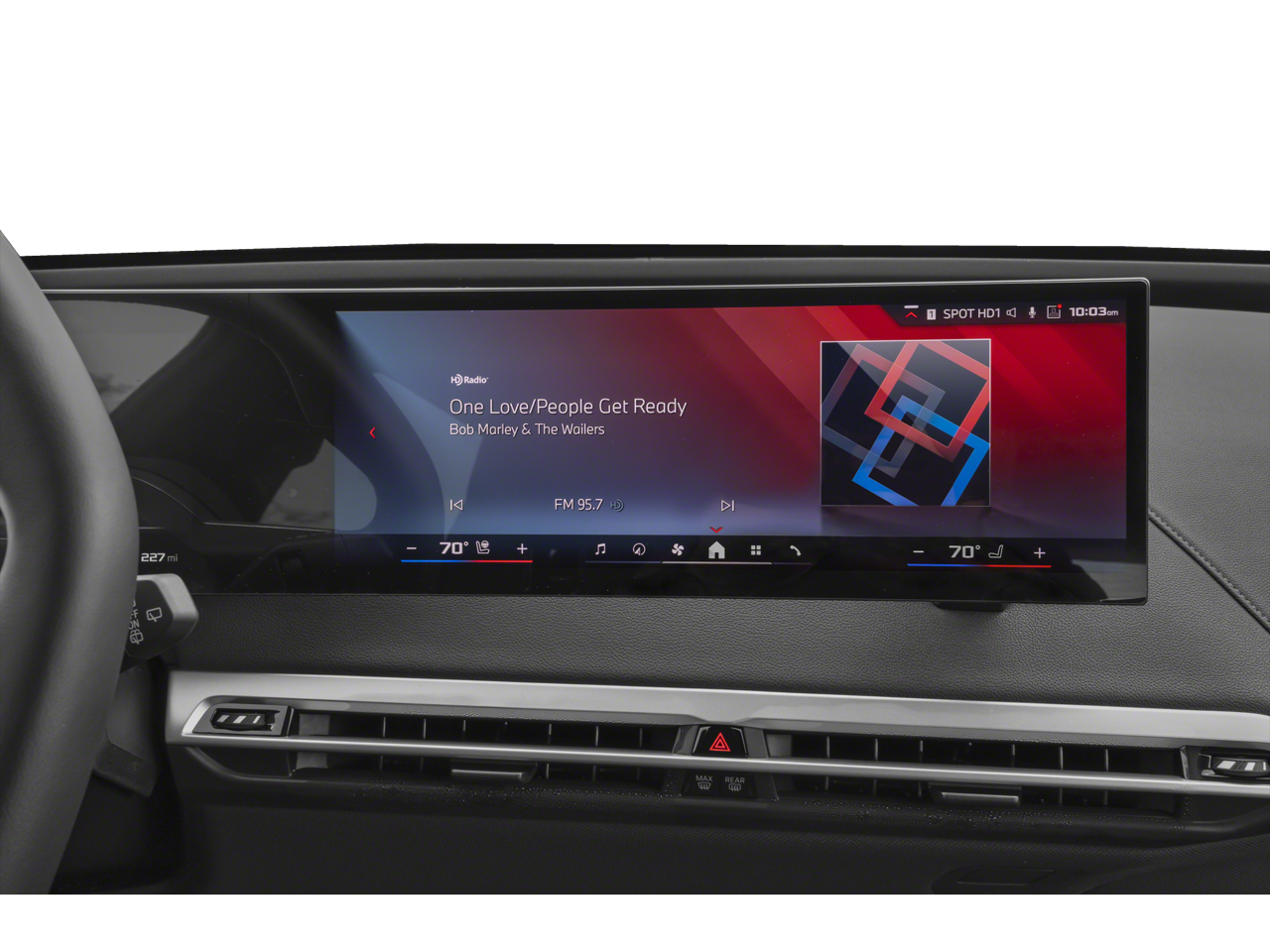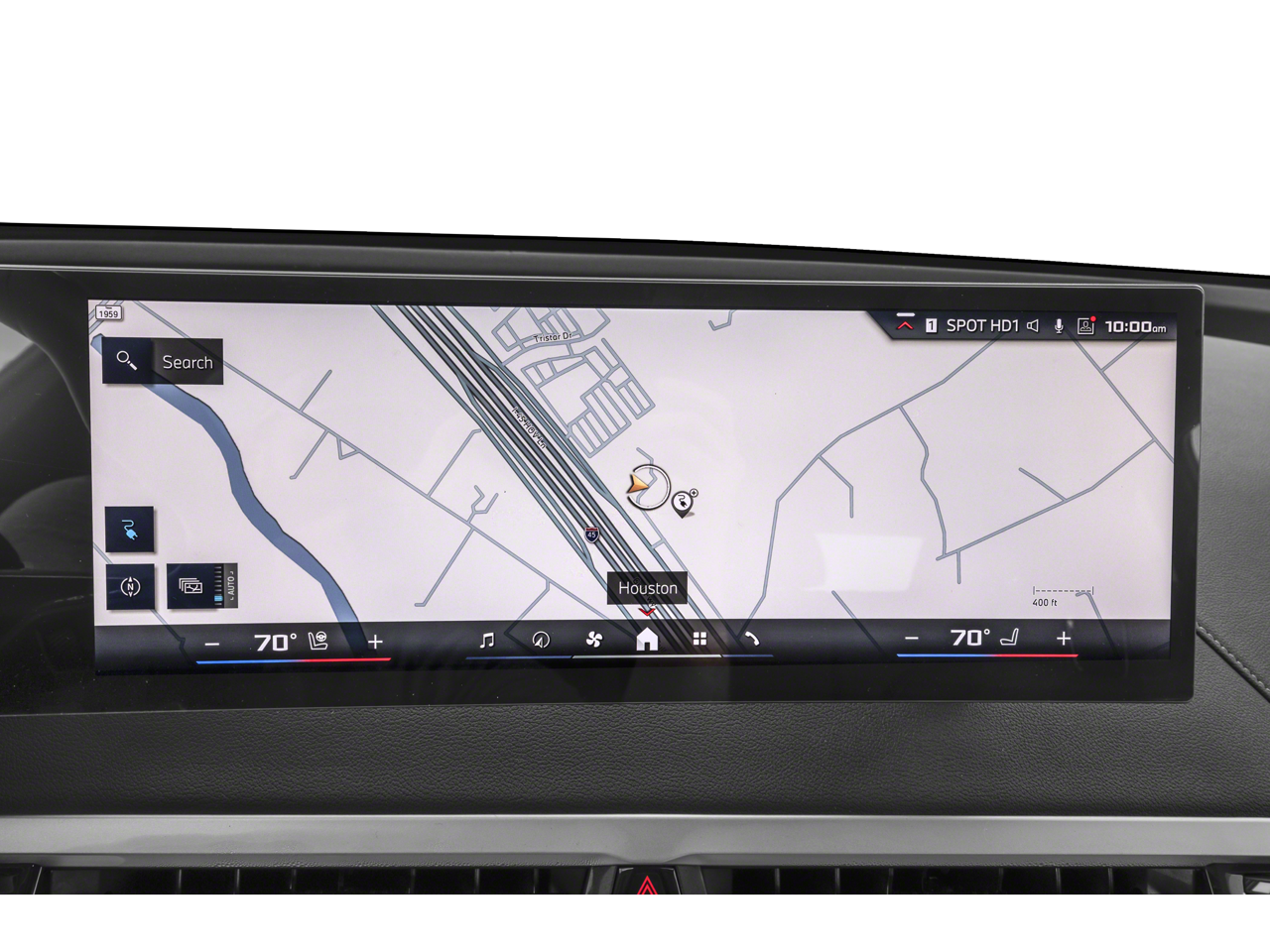 • Heads-up display projects key info onto the windshield.