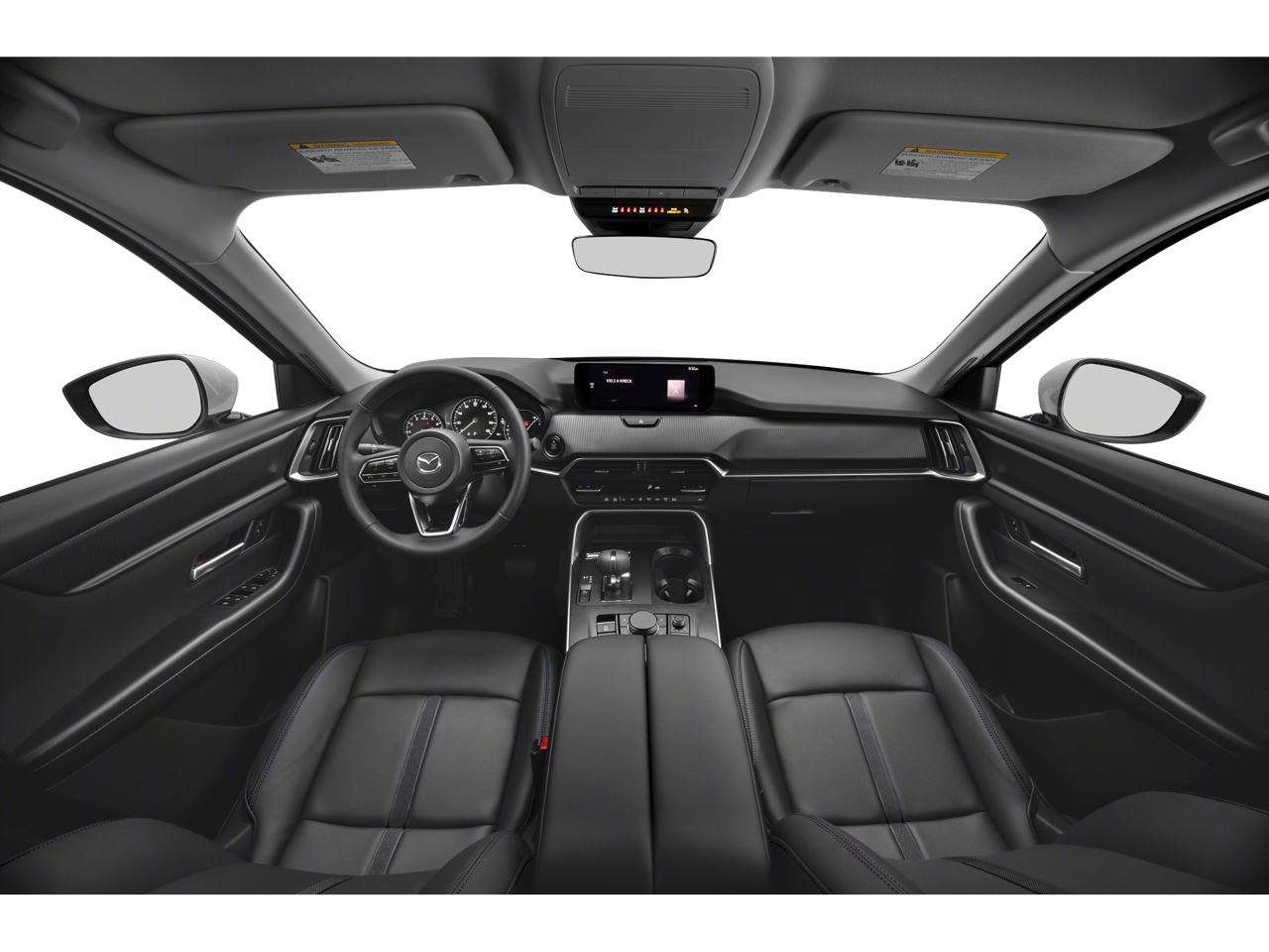 CX-90 3.3 Turbo Select, 4D Sport Utility, I6 Turbo, 8-Speed Automatic, AWD, White, Black Premium Synthetic, 3.692 Axle Ratio, 3rd row seats: bench, 4-Wheel Disc Brakes, 8 Speakers, ABS brakes, Air Conditioning, Alloy wheels, AM/FM radio, AppLink/Apple CarPlay and Android Auto, Auto High-beam Headlights, Automatic temperature control, Brake assist, Bumpers: body-color, Cargo Net, Compass, Crossbars in Silver, Delay-off headlights, Driver door bin, Driver vanity mirror, Dual front impact airbags, Dual front side impact airbags, E911 Automatic Emergency Notification, Electronic Stability Control, Emergency communication system: MAZDA CONNECT, Exterior Parking Camera Rear, Four wheel independent suspension, Front anti-roll bar, Front Bucket Seats, Front Center Armrest w/Storage, Front dual zone A/C, Front reading lights, Fully automatic headlights, Heated door mirrors, Illuminated entry, Infotainment System Voice Command, Knee airbag, Leather Shift Knob, Leather steering wheel, Leatherette Seat Trim, Low tire pressure warning, Mazda Connected Services, Occupant sensing airbag, Outside temperature display, Overhead airbag, Overhead console, Pandora Internet Radio Integration, Panic alarm, Passenger door bin, Passenger vanity mirror, Power door mirrors, Power driver seat, Power Liftgate, Power steering, Power windows, Radio Broadcast Data System Program Information, Radio data system, Radio: AM/FM Sound System, Rain sensing wipers, Rear air conditioning, Rear anti-roll bar, Rear reading lights, Rear seat center armrest, Rear window defroster, Rear window wiper, Remote keyless entry, Rhodium White Premium Paint Charge, SMS Text Msg Audio Delivery & Reply, Speed control, Speed-sensing steering, Split folding rear seat, Spoiler, Steering wheel mounted audio controls, Tachometer, Telescoping steering wheel, Tilt steering wheel, Traction control, Trip computer, Turn signal indicator mirrors, Variably intermittent wipers, Wheels: 19 x 8.5J Aluminum Alloy, Wireless Charging Pad. CARFAX One-Owner. White 2024 Mazda CX-90 3.3 Turbo Select AWD 8-Speed Automatic I6 Turbo Recent Arrival! 24/28 City/Highway MPG