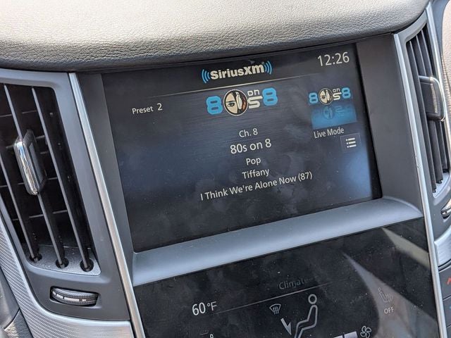 - Radio: INFINITI InTouch Dual HD Display System -inc: 16 speaker Bose Performance Series audio w/Bose Centerpoint simulated surround, wireless Apple CarPlay, Siri Eyes Free, Android Auto, Bluetooth® hands-free phone system w/text messaging assistant, voice recognition for audio, Bluetooth® and vehicle information, streaming audio via Bluetooth®, 2 illuminated USB connection ports (1 type A, 1 type C), auxiliary audio input, HD Radio, SiriusXM radio w/advanced audio features w/3 month complimentary trial and Wi-Fi hotspot